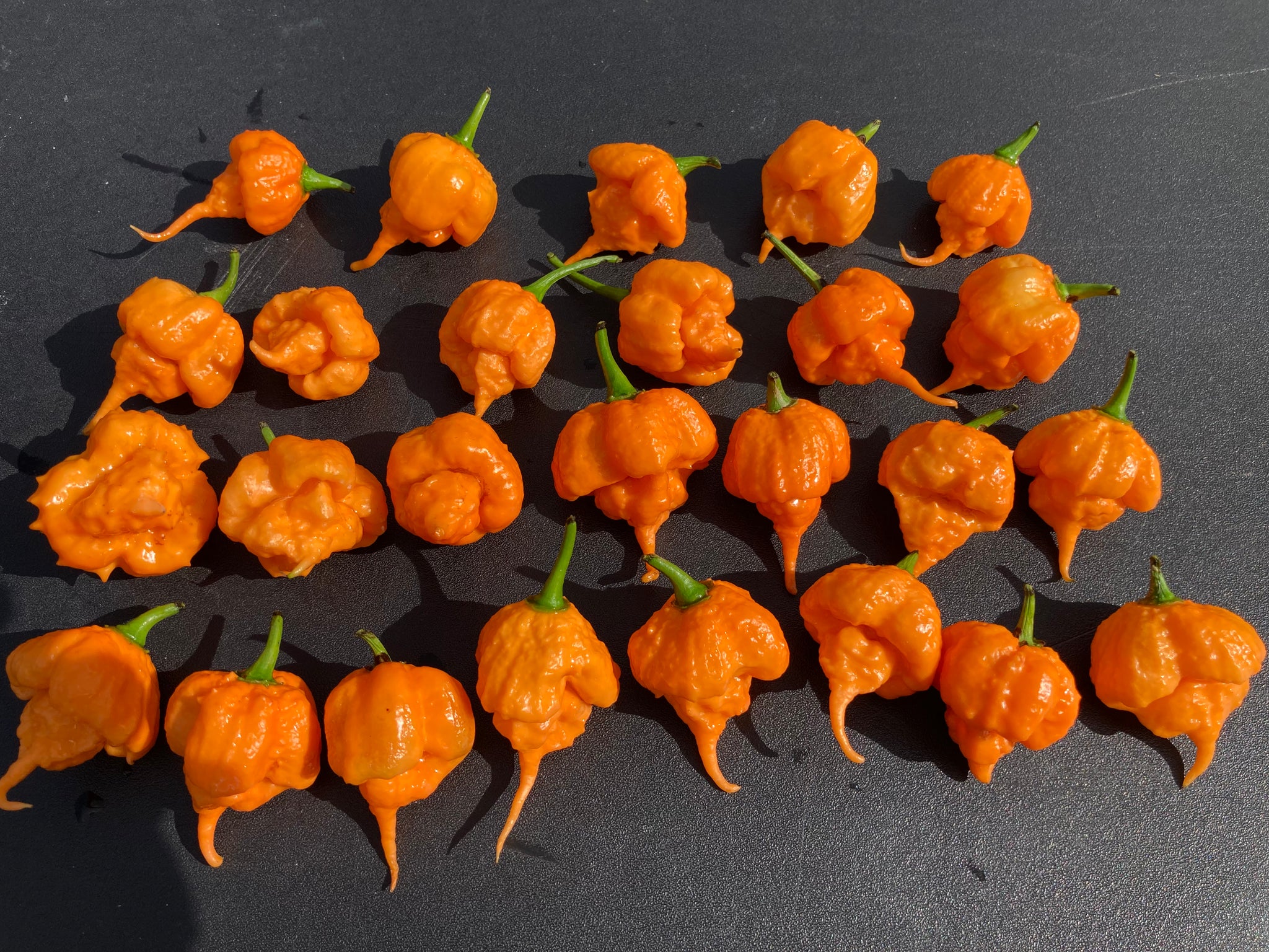 I have never seen an Orange Reaper,Moruga, or Scorpion (other than long tail) before Douglah Peachy and some of the BOC crosses started circulating.